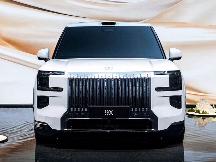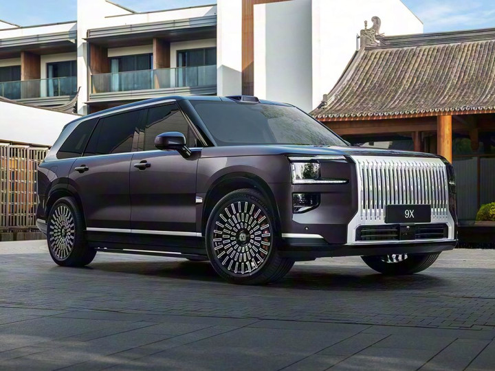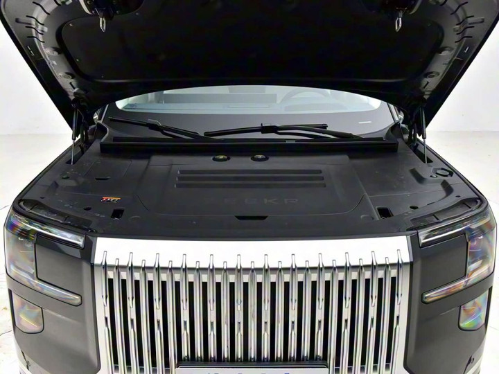 外形上,极氪9X采用极氪经典美学设计,与极氪009的设计一脉相承,前脸采用最大的一体式镀铬格栅,宽度超过120厘米,高度超过70厘米,看着的确能称得上是“杭州湾库里南”。前机舱盖采用蚌式设计,面积达到2.15平方米。格栅两侧是浩瀚星钻矩阵灯组,同样采用独特的造型,大灯组上下分体式设计,支持智能交互投影等功能。车头顶部配备激光雷达。